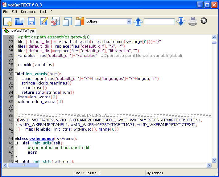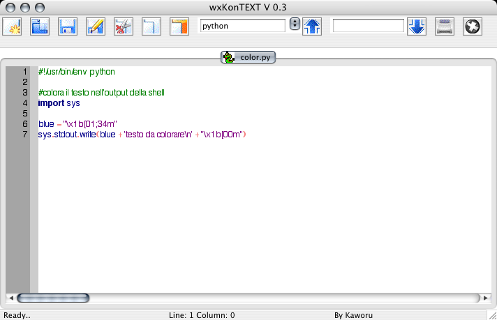 editor di testi scritto in PYTHON che fa l'highlight automatica di codice PHP, C, C++, ASP, PYTHON, HTML,SQL, Action Script (By andr3a) rilasciato sotto licenza GPL quindi e totalmente free.